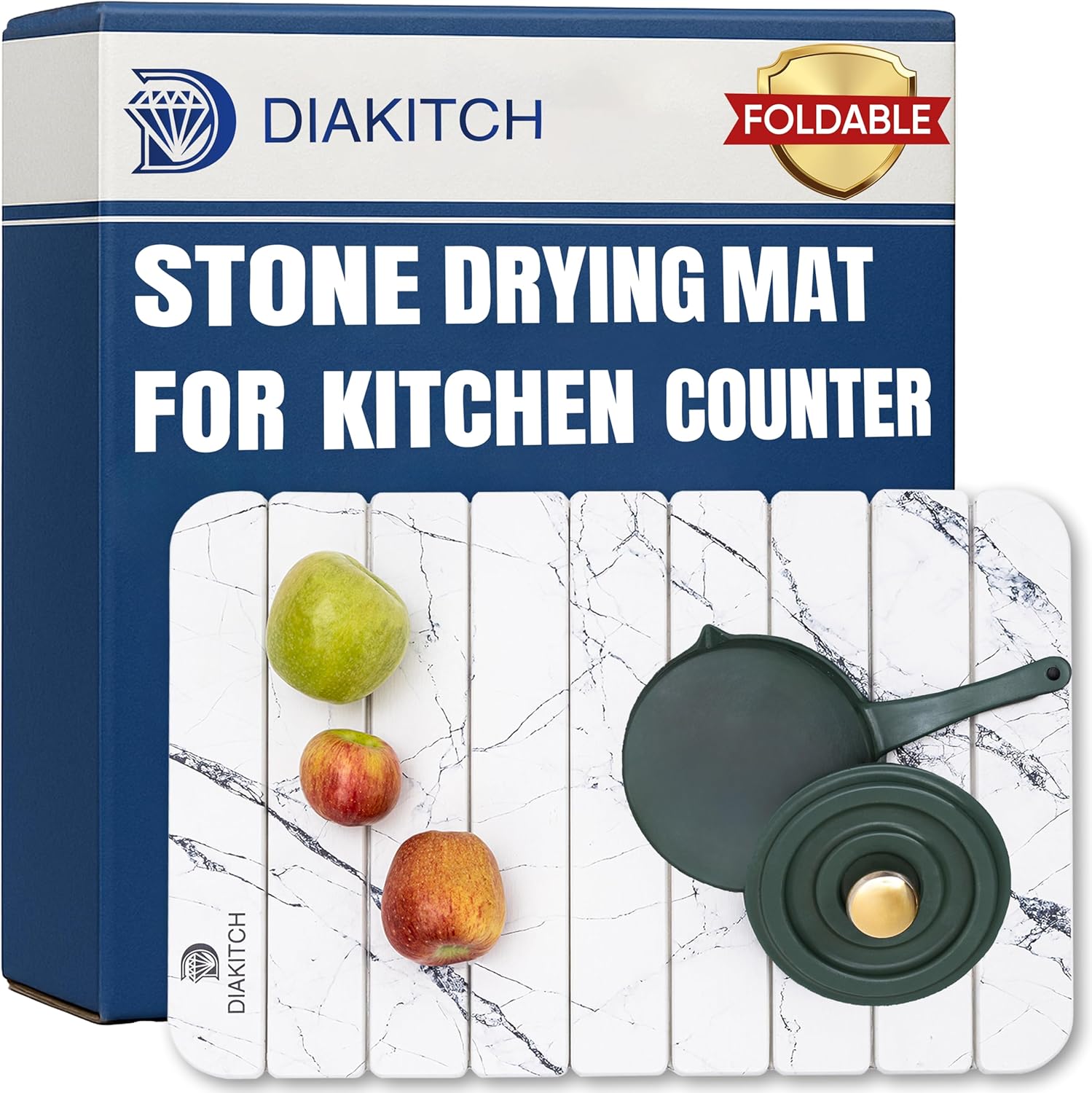 • Collapsible & Space-Saving: This innovative foldable stone drying mat rolls up effortlessly for compact storage, making it a perfect space-saving solution. Unlike bulky drying racks, it fits neatly in kitchen cabinets or drawers.