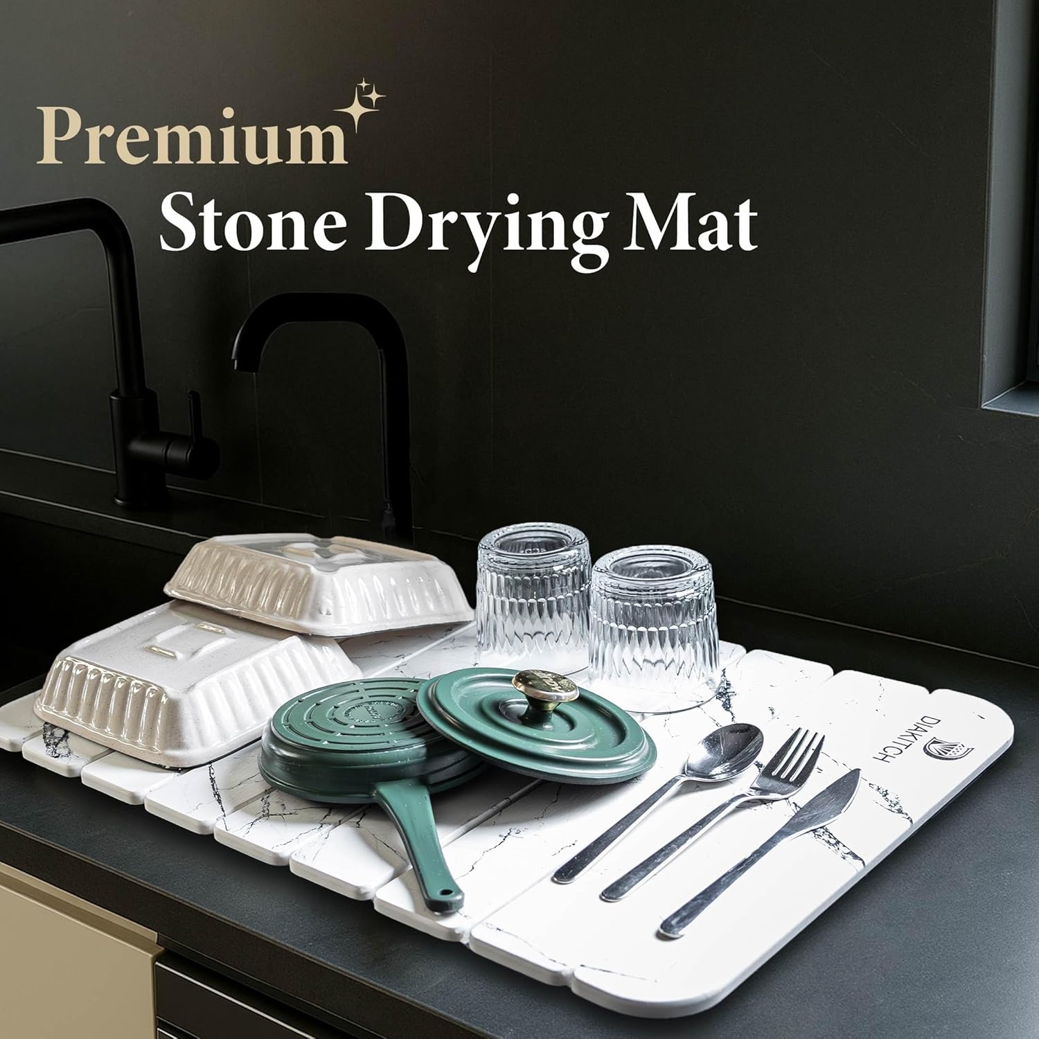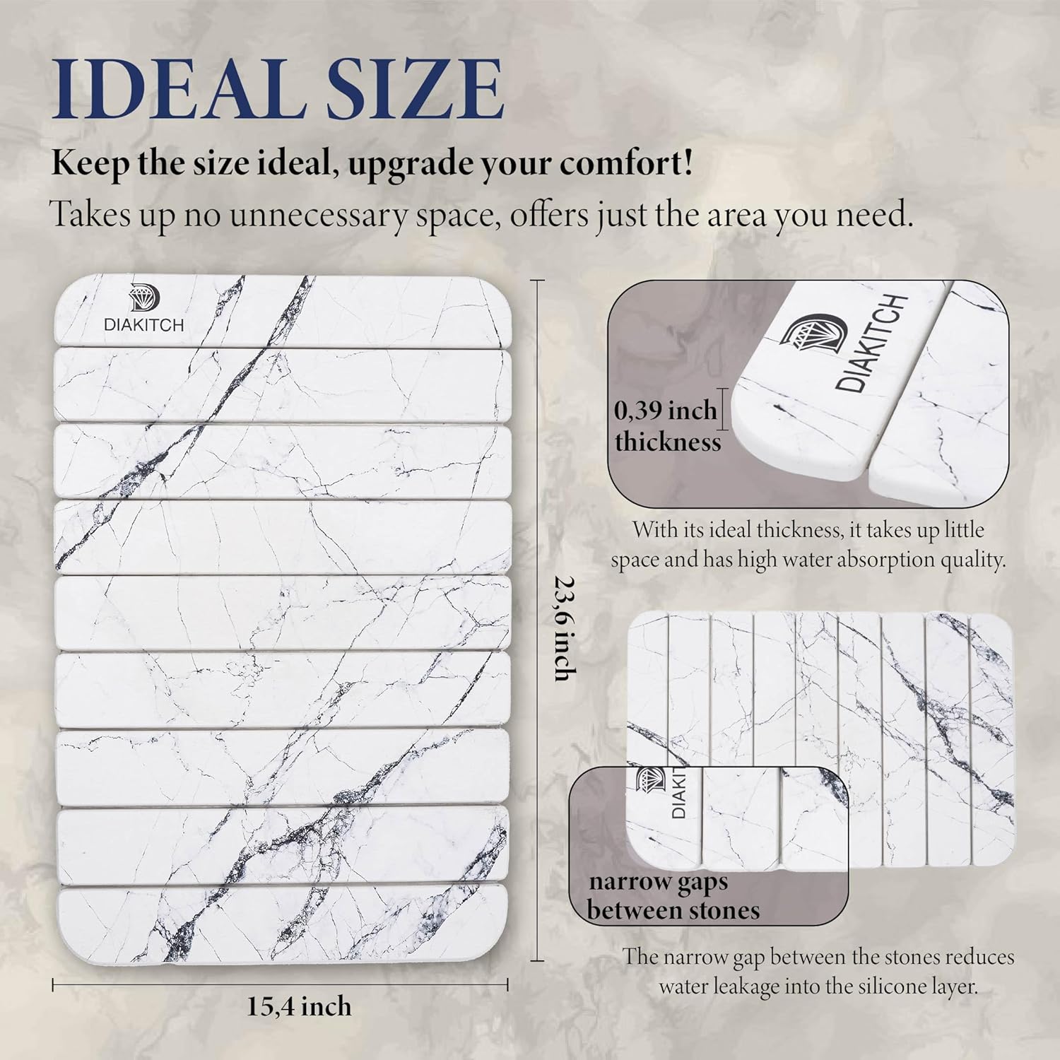 DIAKITCH Stone Dish Drying Mat, Diatomaceous Earth Mat for Dish & Bottle, Ideal for Kitchen – 23.6″ x 15.4″