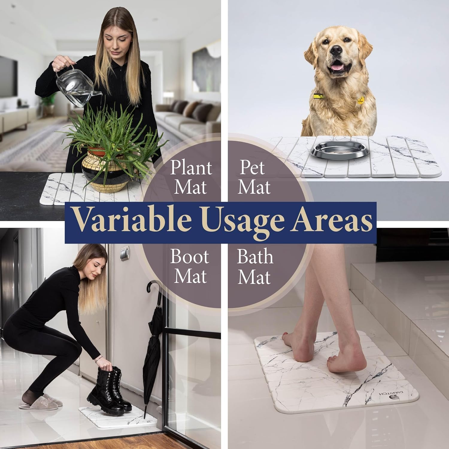 • Multifunctional & Super Absorbent: Instantly soaks up water, keeping your kitchen or bathroom space spotless and dry. Perfect for drying dishes, utensils, and pots, or as an elegant stone bath mat. A truly versatile and practical addition to any home.